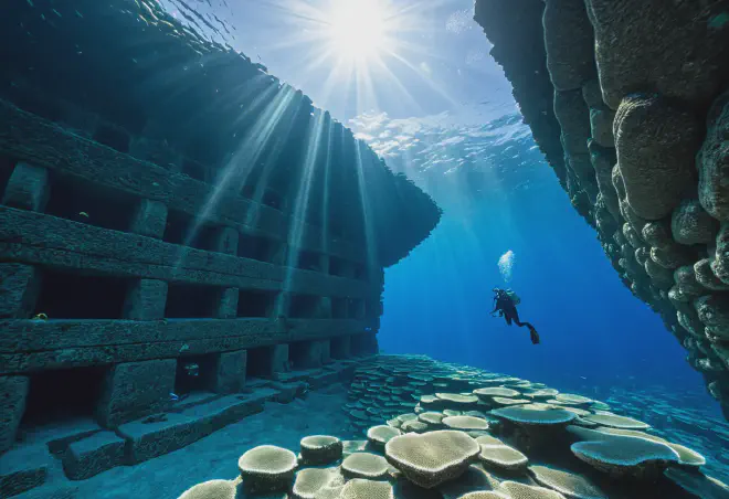 彼の分析によれば、地形には排水溝、神殿の入り口、道路、さらには亀の形に彫られたレリーフや「二畳岩」と呼ばれる対の巨石など、生活や儀式の痕跡が数多く見つかっているといいます。また、琉球列島がかつてアジア大陸と陸続きだった約1万年前、氷河期が終わって海面が上昇した際にこの都市が水没したという仮説は、太平洋に沈んだとされる伝説の「ムー大陸」の記憶を呼び覚まします。