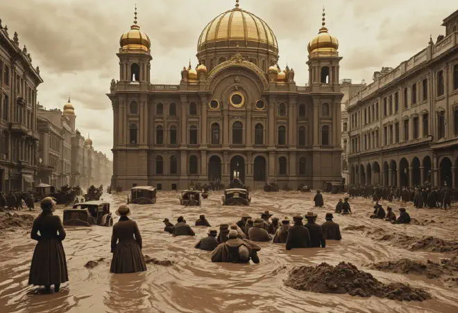 タルタリア説の核心にあるのが、 「マッドフラッド(Mud Flood=泥の洪水)」 という概念です。信奉者たちは、1840年代頃に世界規模の泥の洪水が発生し、タルタリアの高度な文明は土砂の下に埋もれたと主張します。
