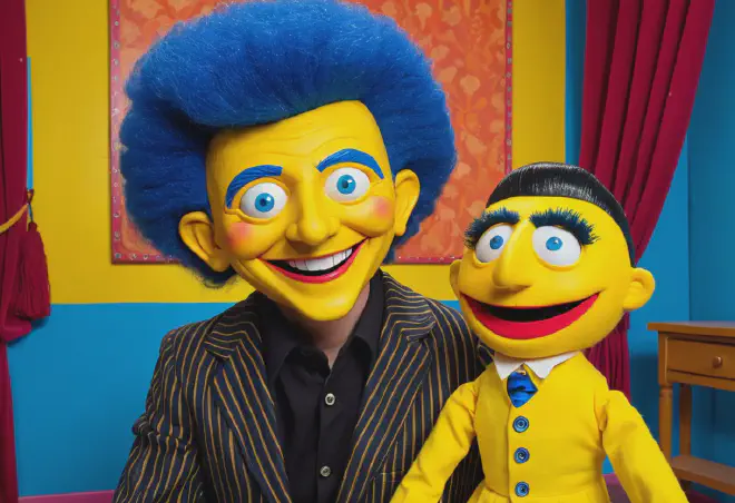 物語の中核を成すのが、青いリーゼントヘアがトレードマークの画家パペット、ウォリー・ダーリンです。彼は他の隣人たちとは異なり、唯一視聴者に対して直接的な語りかけ――あるいは問いかけ――を行ってきます。