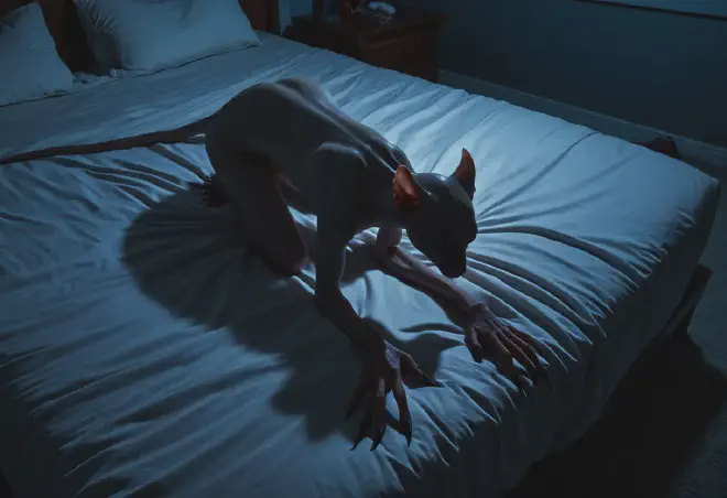 ドアを厳重に施錠し、温かい布団に潜り込んでいても、彼は壁の隙間から、あるいは闇そのものが凝固したかのように現れます。もし今夜、あなたが理由もなく深夜に目を覚ましてしまったとしたら。そして、足元の布団がわずかに重く、不自然に沈んでいるように感じられたとしたら――。