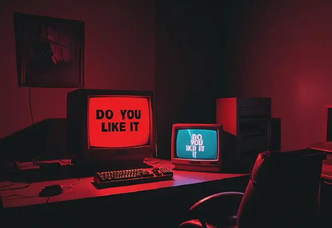 インターネットを閲覧中、突然、目に刺さるような赤い背景に黒い文字で書かれたポップアップが現れます。 「あなたは 好きですか?」 不可解に思いウィンドウを閉じようとすると、次の瞬間、問いかけは変化します。 「赤い部屋は 好きですか?」 さらに消そうとクリックを繰り返すほど、問いかけは急速に人格を剥き出しにし、最終的には不気味な合成音声とともに、画面全体が鮮血のような赤一色に塗りつぶされます。この瞬間にブラウザの閲覧者は物理的な死を迎え、後日、家中の壁を自らの血で赤く塗りつぶした「赤い部屋」の中で、変わり果てた遺体となって発見される――。
