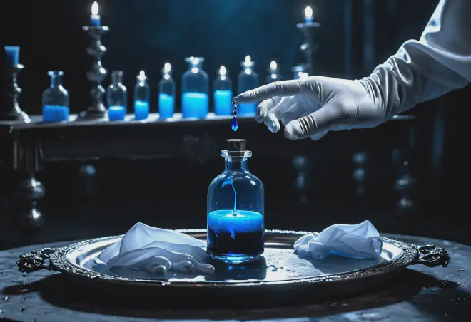 The image of a blue liquid glowing eerily inside a syringe. It is a modern curse, a crystallization of the fundamental sense of unfairness in our society and the intense hatred (ressentiment) toward the elite class.