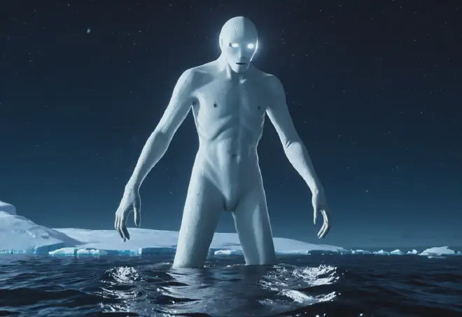 The legend began with a chilling post on an occult message board. *The Whaler’s Report : The poster claimed to be a member of a Japanese research whaling vessel. They described an encounter in the Antarctic where the crew saw what they initially thought was a distant iceberg. As they approached, they realized the “iceberg” possessed smooth skin and massive, human-like arms. *The Morphology of Terror : The creature was described as being 60 to 90 feet long, completely white, and possessing a face with a slit-like mouth and large, empty eyes. Most disturbingly, it was said to have distinct fingers on its front limbs.