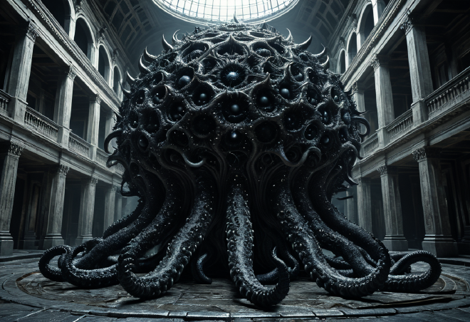 クトゥルフ神話の頂点に君臨する神 アザトース(Azathoth) は、ゼウスのような知性ある統治者でも、サタンのような悪意の権現でもない。彼は 「盲目の白痴の神(Blind Idiot God)」 であり、宇宙の根本原理そのものが持つ「圧倒的な無意味さ」を象徴する存在である。
