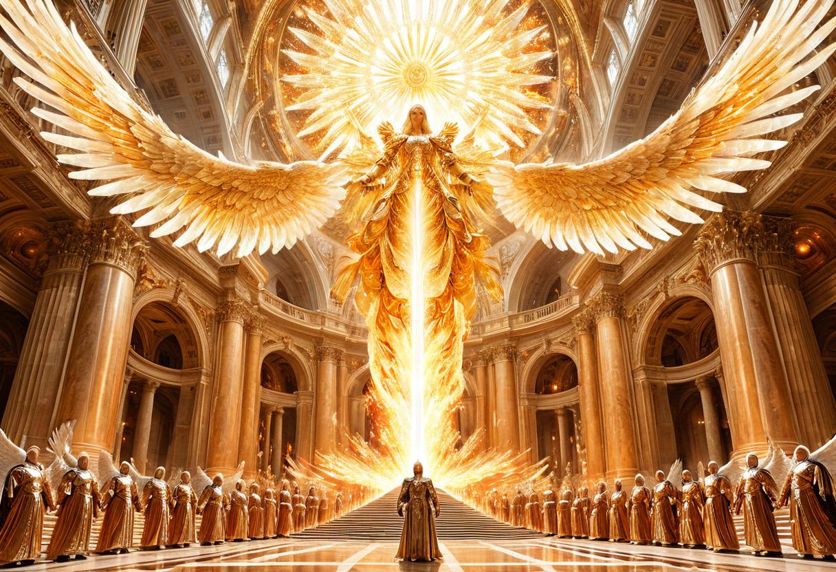 上級三隊(熾天使・智天使・座天使) :神の玉座を直接取り囲む特権的な存在。彼らはもはや人間と対話する必要がないため、その姿は「燃え盛る火」「多眼の車輪」「無数の翼」といった、物理法則を逸脱した純粋なエネルギー体や幾何学的な様相を呈する。