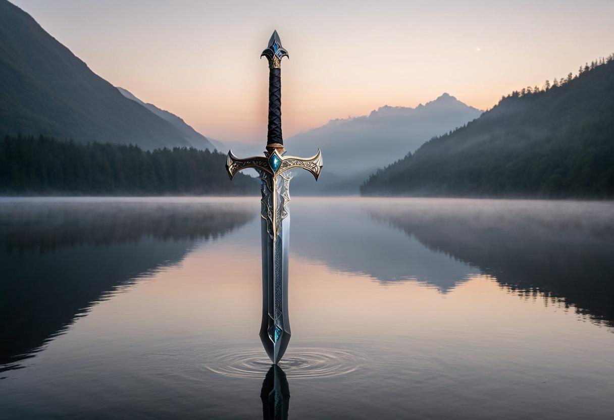 エクスカリバー(湖の乙女の剣) :石の剣が折れた後、魔術師マーリンの導きで湖の乙女から授かった真の聖剣。鞘を持っている限り持ち主を死から守るという魔法的特性を持ち、ファンタジーにおける「究極の武器」の象徴となった。