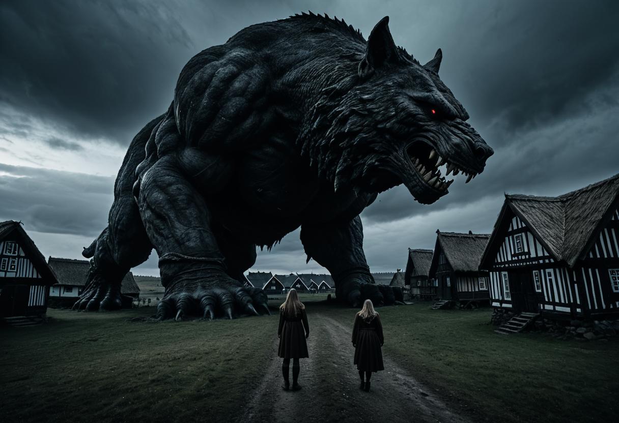 三兄弟の長男 :ロキと女巨人アングルボザの間に生まれた彼は、当初は小さな子狼でしかなかったが、日に日に巨大化し、やがてアースガルドを覆い尽くさんばかりの巨体となった。
