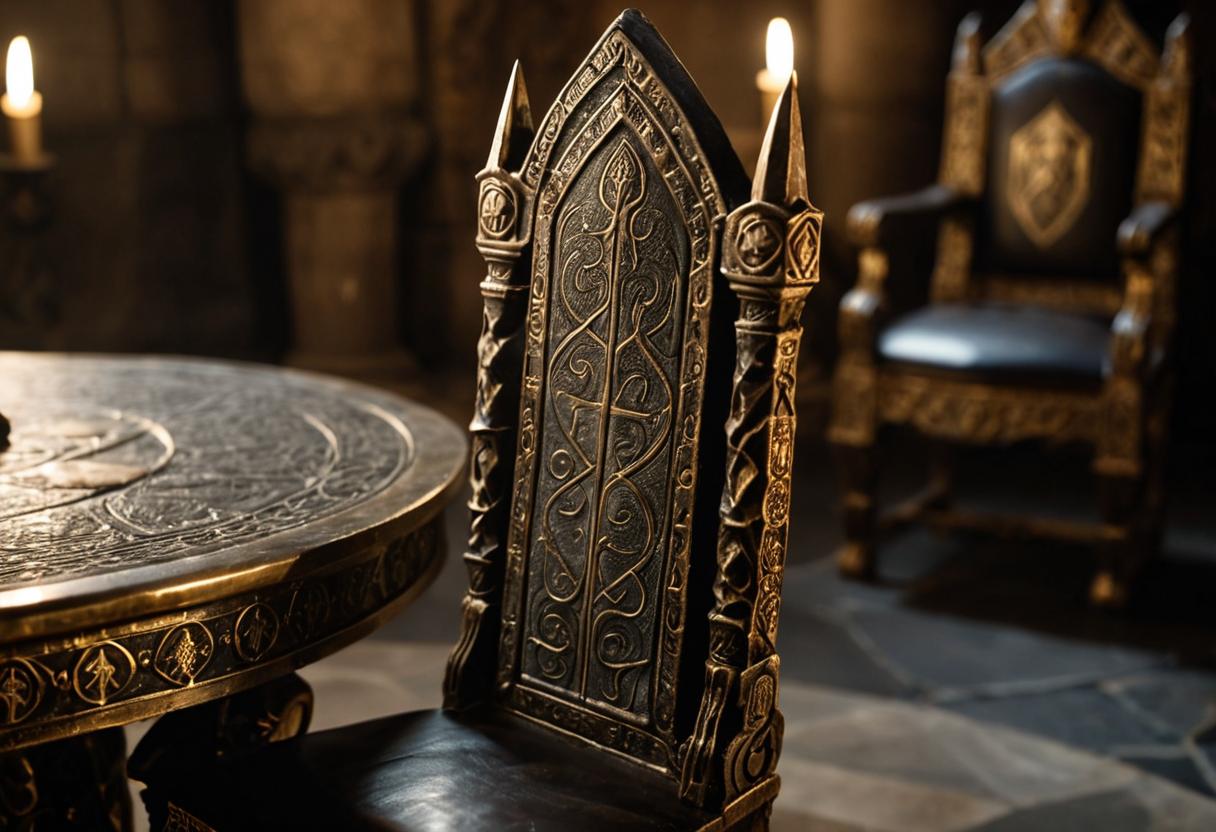 危険な席(シージ・ペリラス) :円卓には一席だけ、空席が用意されていた。そこには、聖杯を見つける運命にある者以外が座ると即座に命を落とすとされる。この「選ばれし者(The Chosen One)」を待つ余白という設定が、物語に絶え間ない緊張感と予感を与えた。