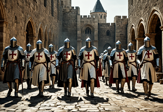 信用創造の先駆者 :彼らは巡礼者の財産を預かり、各地の拠点で引き出せるという、現代の銀行に近いシステムを確立した。これにより莫大な富を得た騎士団は、王侯貴族をも凌駕する経済力を持ち、ヨーロッパ全土にネットワークを張り巡らせた。