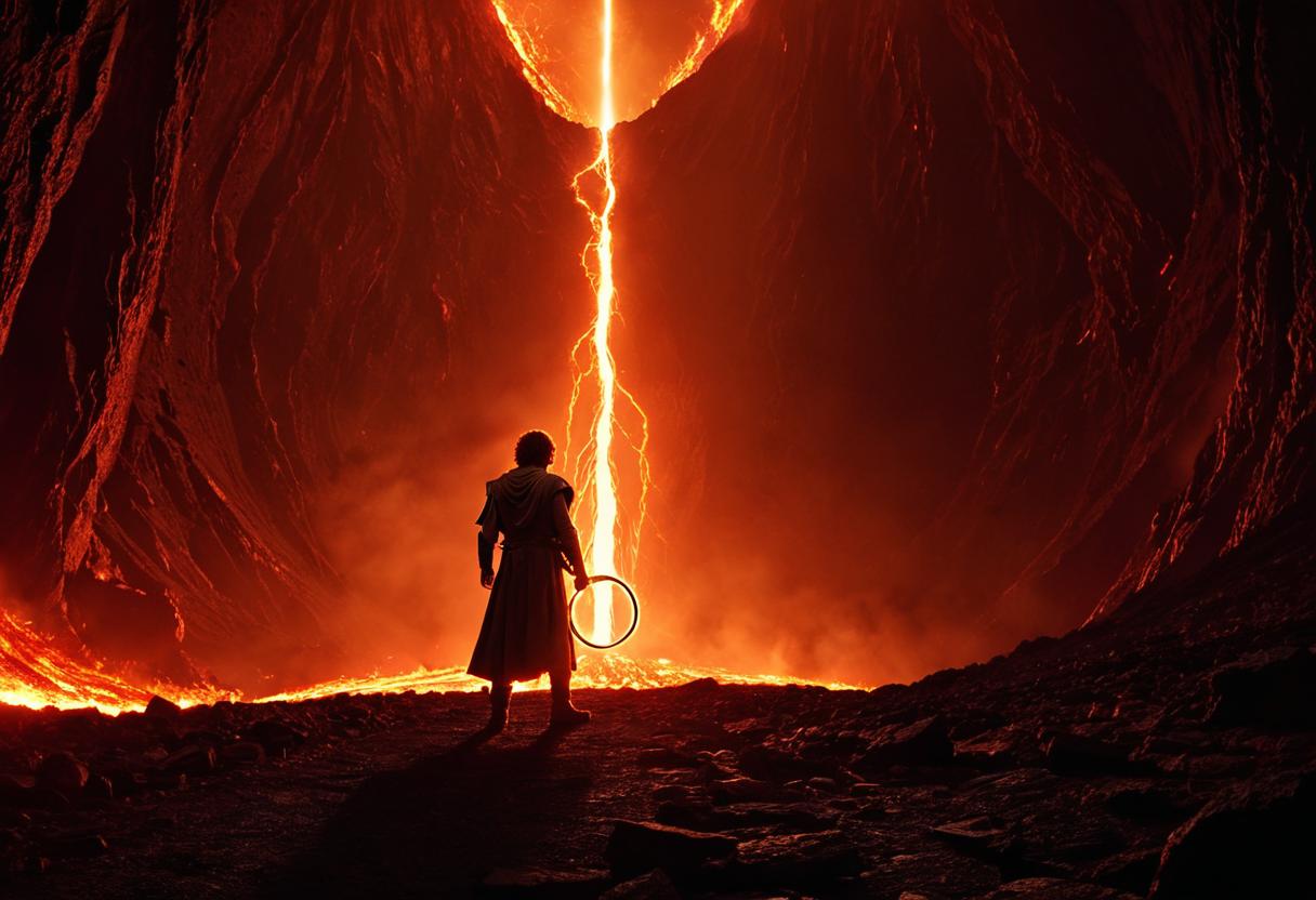 滅びの山での挫折 :しかし、驚くべきことに、フロドでさえ最後には指輪の魔力に屈し、破壊を拒んで自らの指にはめてしまう。指輪を最終的に灰にしたのは、人の意志ではなく、指輪に固執したゴラムとの「もつれ合い」という皮肉な摂理であった。