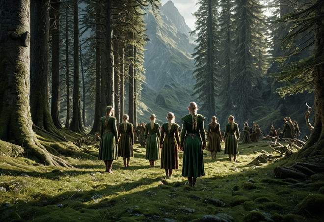 深緑の森を棲家とし、自然の息吹と同化した民。弓術と隠密に長け、聖域を乱す者には容赦のない報いを与える。