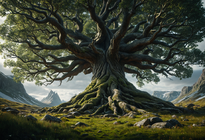 世界樹ユグドラシル (Yggdrasil):次元を繋ぎ、生命を紡ぐ「宇宙の巨大なトネリコ」