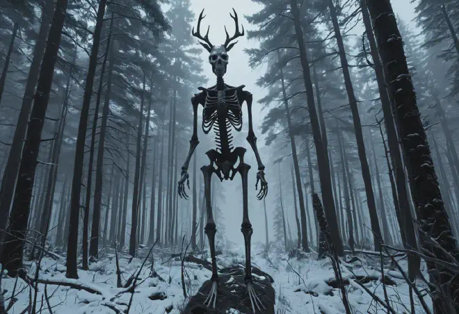 現代のポップカルチャー(映画やゲーム)では、ウェンディゴは「鹿の頭蓋骨を被った怪物」として描かれるのが一般的ですが、本来の伝承はより人間的で、それゆえに不気味な姿として描写されます。 *伝統的描写 : 皮膚は灰色で死体のように乾燥し、骨に張り付いている。特徴的なのは「自らの唇まで食べてしまった」ために剥き出しになった鋭い歯と、血走った巨大な瞳です。 *響き渡る声 : 彼らは風の音そのものに成りすまし、吹雪の中から獲物の名前を呼びます。一度その声に返事をしてしまえば、氷点下の体温を持つ鋭い爪が、背後からあなたの首を掴むでしょう。