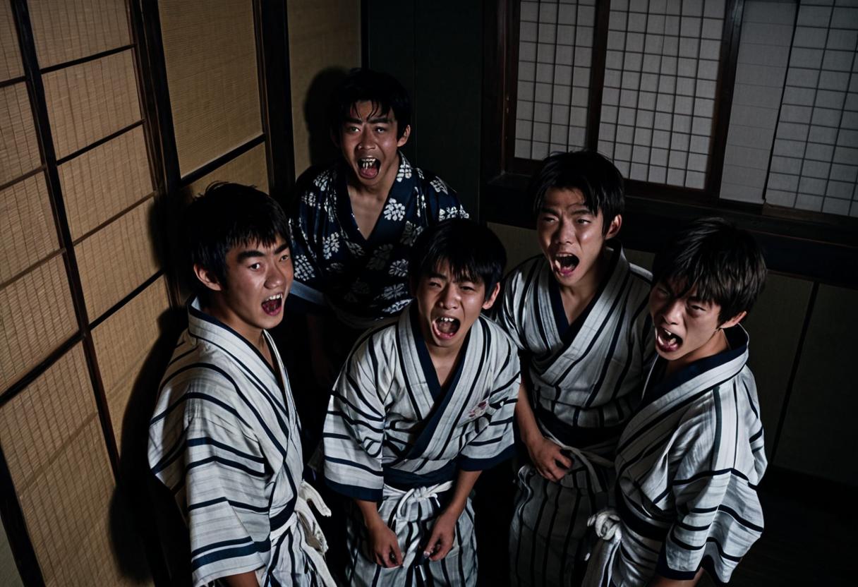 集団ヒステリーと共鳴 :閉鎖された旅館、修学旅行の緊張、そして超常的な「お札の部屋」。これらの条件が揃ったとき、一人の発狂は瞬時に集団全体へと共鳴し、制御不能なパニックを引き起こす。