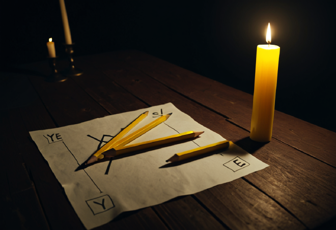 この儀式が爆発的に広まった最大の理由は、その 構成の極限までの簡潔さ にある。必要なものは、紙1枚と鉛筆2本。複雑なまじないも、深夜の廃墟も必要ない。明るい教室の片隅で、休み時間の間に数分で実行できるその「ハードルの低さ」が、好奇心旺盛な若者たちの指先を動かしたのだ。