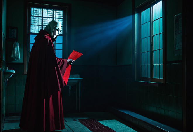 赤マントから生き延びる唯一の伝承は、「紙はいりません」と丁重に、しかし断固として 「不条理な問いかけそのものを拒絶する」 ことだといわれている。理不尽な選択を強いるルールに対し、沈黙をもって回答を拒む。それは、幾重もの規律に縛られた日常の中で、私たちが「自分自身」という不可侵の領域を守るための、最後の抵抗なのかもしれない。