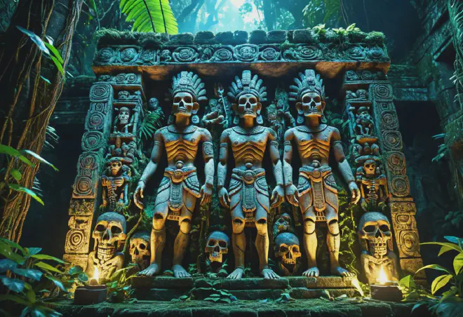双子は知恵と魔法、そして 命懸けの球技(ポク・タ・ポク) でこれらの試練を次々と突破していきます。ついには自ら死を選んで蘇るという究極のトリックで冥界の神々を翻弄し、その支配構造を破壊しました。